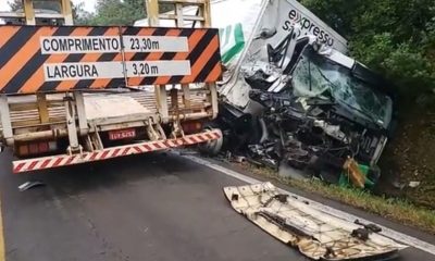 Um acidente envolvendo três caminhões deixa o trânsito lento na ERS-135, nesta manhã, no Norte do Estado. A pista no sentido Passo Fundo-Coxilha está bloqueado. Os...
