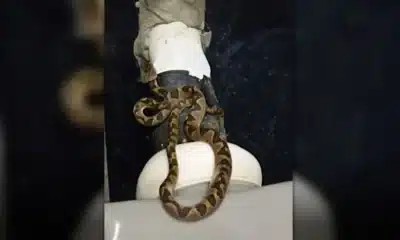 Uma dona de casa de 18 anos levou um susto ao encontrar uma visita inesperada após usar o banheiro da casa do chacareiro Dilson Marins, de...