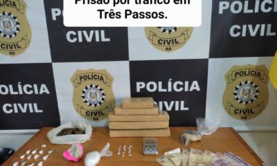 A Polícia Civil, na tarde desta segunda-feira (03), através dos Agentes da Delegacia de Polícia Civil de Três Passos, prendeu um indivíduo por tráfico de drogas....