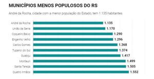 O Rio Grande do Sul tem duas das cidades menos populosas do Brasil. André da Rocha, com 1.135 habitantes, e União da Serra, com 1.170, ambas na serra gaúcha, figuram em sexto e oitavo lugar no ranking nacional, liderado pela minúscula Borá, no interior de São Paulo, com seus 907 habitantes.