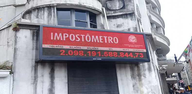 O Impostômetro, ferramenta que calcula o valor total pago em impostos, taxas e contribuições pelos brasileiros, atinge a marca de R$ 2,5 trilhões na manhã desta segunda-feira (20), segundo a ACSP (Associação Comercial de São Paulo).