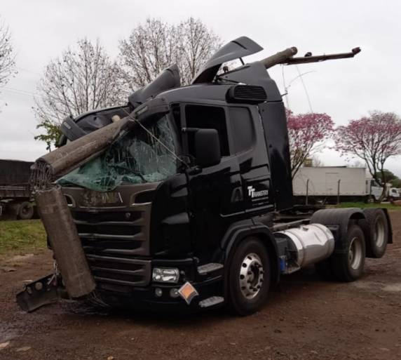 Caminhão colide e arrasta poste de energia elétrica em Santa Rosa