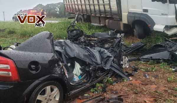 Três pessoas morreram depois que um caminhão praticamente passou sobre um veículo Astra na BR 163.
