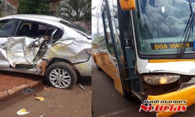 Um ônibus de transporte de passageiros bateu contra um veículo estacionado, na tarde deste domingo (13) n o Centro de Três de Maio. Um Renault Fluence...