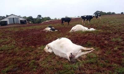 A queda de um raio causou a perda de três vacas para um agricultor na noite de quarta-feira, 2, em Tiradentes do Sul. O fato...