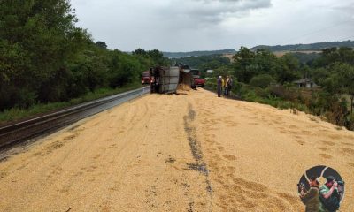 Na manhã de quinta feira(26), por volta de 09:15 da manhã um caminhão de carga Scania, que fazia sentido Rondinha /Sarandi ao entrar na curva...