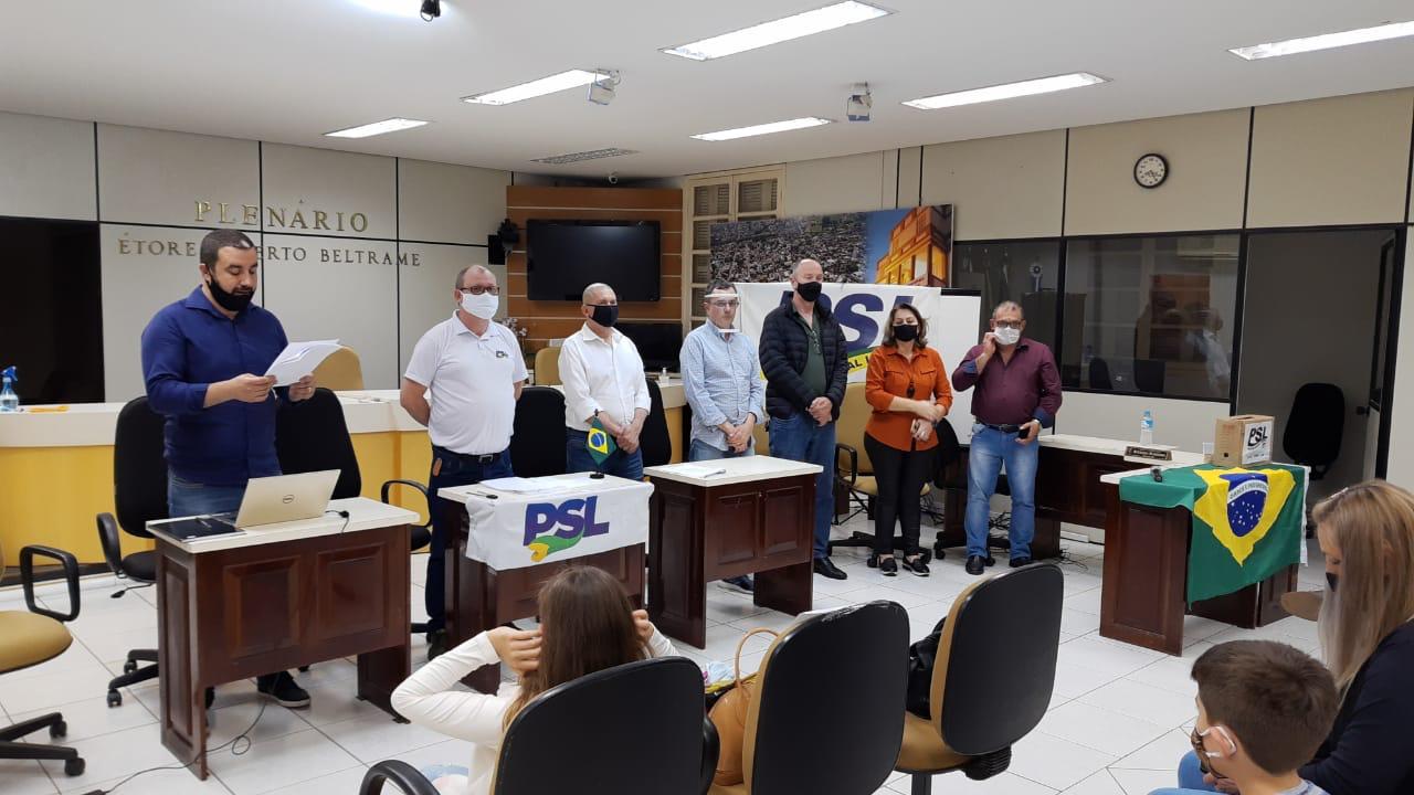 O Partido Social Liberal (PSL) confirmou por unanimidade na noite desta quinta-feira (10) o apoio a Anderson Mantei (PP) e Aldemir Ulrich – Taquari (MDB) para a disputa da majoritária nas Eleições 2020 de Santa Rosa. A oficialização dos nomes foi feita durante a convenção partidária da sigla, realizada na Câmara de Vereadores de Santa Rosa, e que definiu ainda os nomes de três candidatos a vereadores para o pleito, Elaine Maria Bentz, Adelar Oliveira da Silva e Taylor Kaefer.