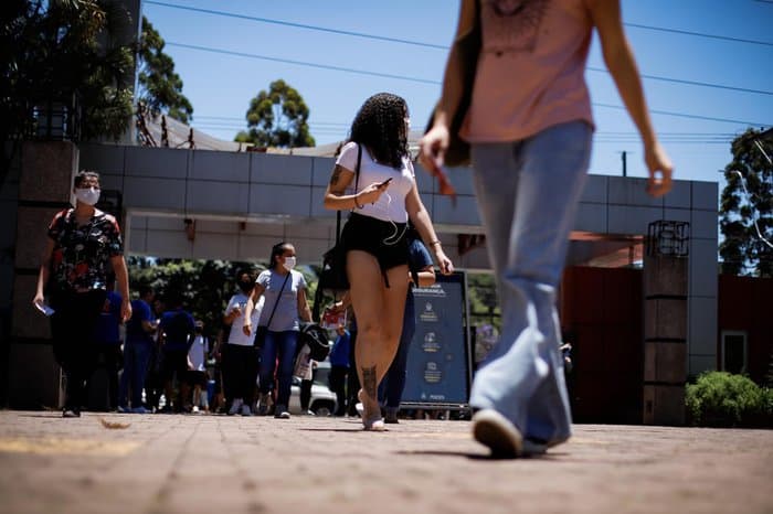É permitido que o candidato leve bebidas (sem álcool) e lanches para a prova. Itens eletrônicos como celular, smartphone, fone de ouvido, tablet e relógio inteligente não são permitidos e devem ficar dentro do porta-objetos entregue a cada participante. O uso de máscara é facultativo em cidades e Estados onde o item deixou de ser obrigatório. Veja tudo que é permitido e proibido neste link.