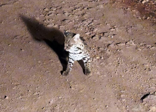 Até a edição desta postagem tentávamos contato com um biólogo para definir a espécie do animal (jaguatirica ou gato-do-mato), embora aplicativos de telefone de identificação apontassem para jaguatirica como a espécie fotografada.