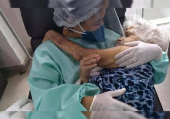 Foto de técnica em enfermagem ninando idosa comove web: Covid