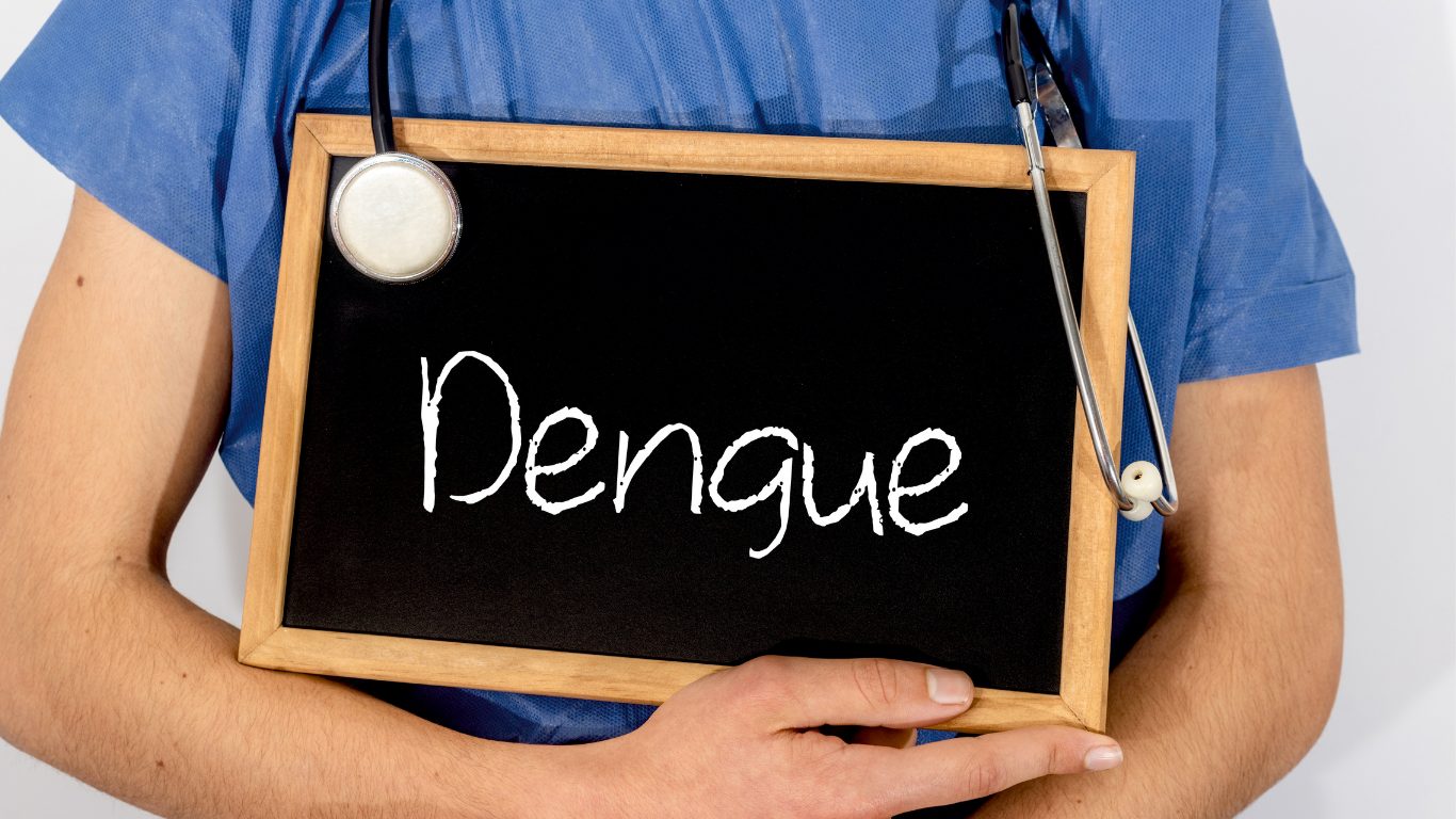 Nos adultos, a primeira manifestação dos sintomas da dengue, é a febre alta, (39ºC a 40ºC), de início repentino, associada a dor de cabeça, prostração, dores musculares, nas juntas e atrás dos olhos, vermelhidão no corpo (exantema) e coceira. Náuseas, vômitos e diarreia podem estar presentes, mas são menos frequentes. Num período de 3 a 7 dias, a temperatura começa a cair e os sintomas geralmente regridem, mas pode persistir um quadro de prostração e fraqueza durante algumas semanas. Pacientes com dengue, ou com suspeita da doença, precisam de assistência médica.