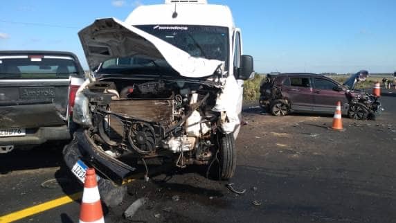 Conforme informações da Policia Rodoviária Federal, o local onde ocorreu o acidente estava em obras e os veículos estavam parados quando o caminhão furgão colidiu na traseira do T-Cross, causando o engavetamento.