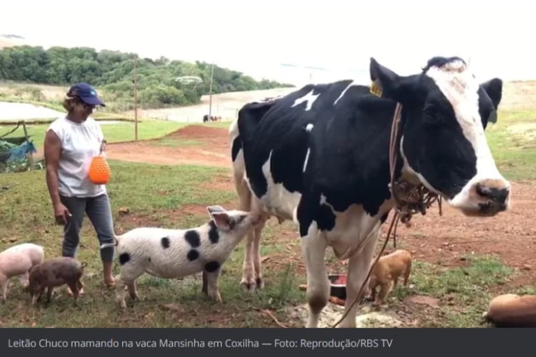 Um fato inusitado tem chamado a atenção da família Costa, em Coxilha, no Norte do Rio Grande do Sul. Há cerca de 10 meses, sete leitões nasceram na proprierade, que fica na localidade de Entre Rios. Só que um deles, com dificuldade para comer e conviver com os outros, acabou buscando o amparo que precisava em uma vaca.