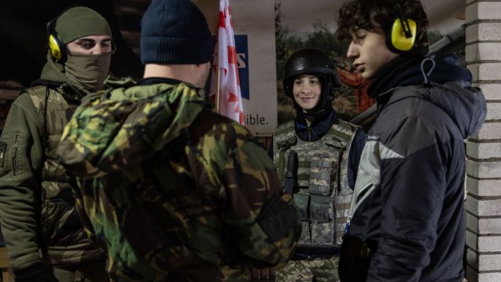Meninos recebem instruções de tiro na Ucrânia