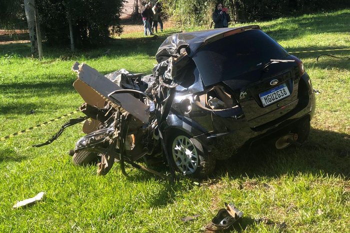 Segundo a BM, após esfaquear a mulher, o homem fugiu em um veículo Ford Ka pela RS-324 e acabou se envolvendo em um acidente. De acordo com o Comando Rodoviário da Brigada Militar (CRBM) foi na altura do km 332, em Vila Maria, por volta das 10h30. O carro em que Julio César da Silva Cunha, de 42 anos, estava colidiu frontalmente com uma carreta. Ele morreu no local.