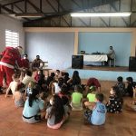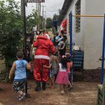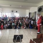 O domingo (20/12), foi de muita alegria, sorrisos e diversão nas comunidades da Auxiliadora II e Vila Winlkemann em Santa Rosa, o Papai Noel juntamente com diversos personagens de desenhos, Galinha Pintadinha, Minions, Bem 10 e Marcha e o Urso chegaram carregados de presentes, doces, brinquedos, cachorro-quente e muitas brincadeiras para as crianças.