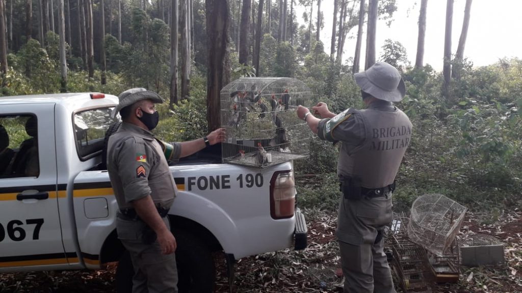 Policiais do 3 Batalhão Ambiental da Brigada Militar realizaram a apreensão e soltura de pássaros silvestres mantidos em cativeiro.