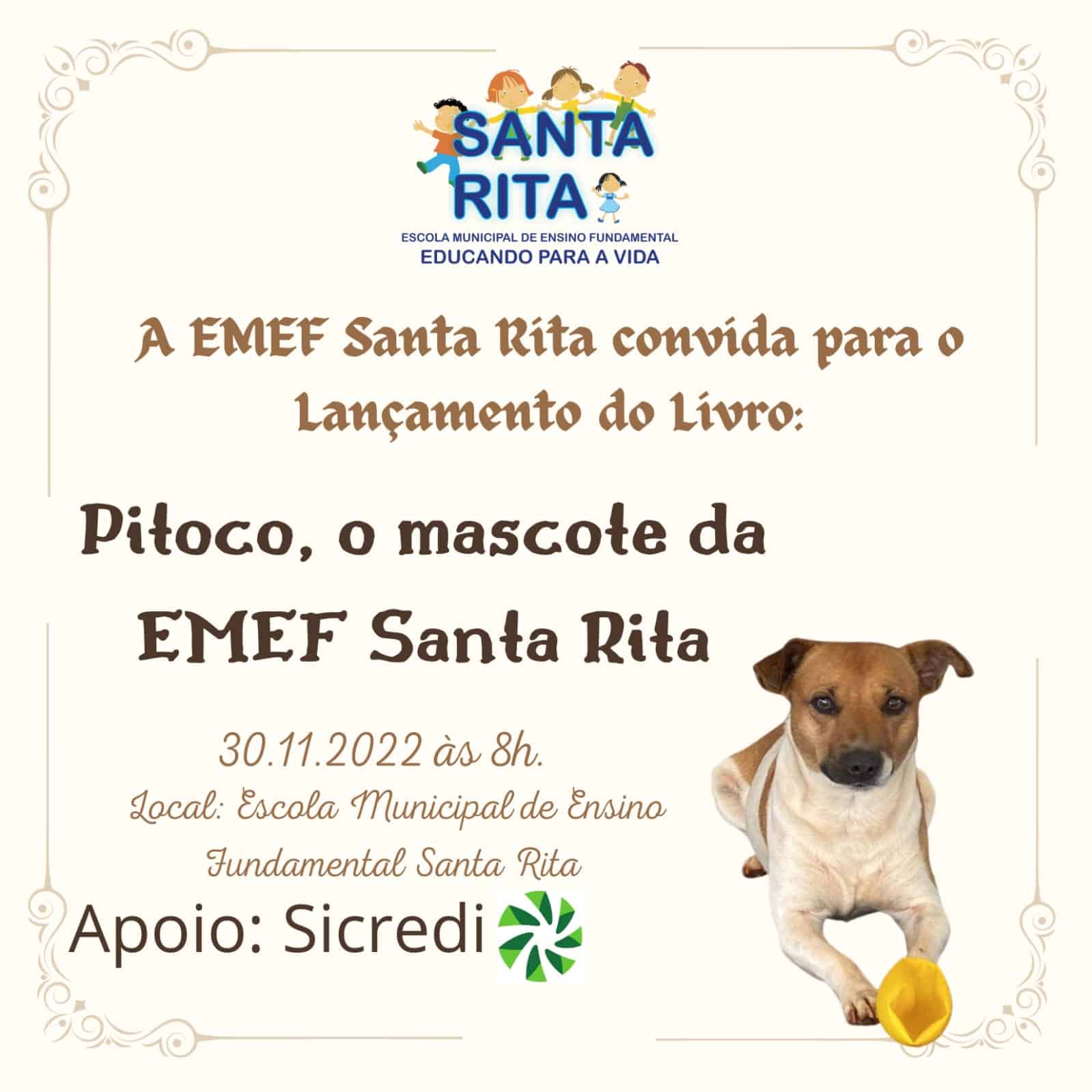 Neste livro, você conhecerá o Pitoco, um cachorrinho simpático que conquistou o coração da Escola Municipal de Ensino Fundamental Santa Rita. Algumas fotos, que mostram o dia a dia do Pitoco na escola, foram carinhosamente ilustradas por alunos. Utilizando-se de textos fáceis de entender, essas fotos também receberam legendas que expressam um pouquinho do carinho que a comunidade escolar sente por esse cachorrinho mais que especial.