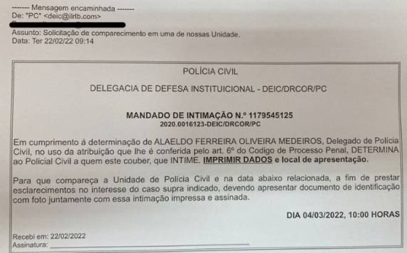 De acordo com Anicet, o nome do delegado que aparece no corpo do e-mail não é de nenhum agente do Estado e o e-mail também não contém a identificação correta da Polícia Civil.