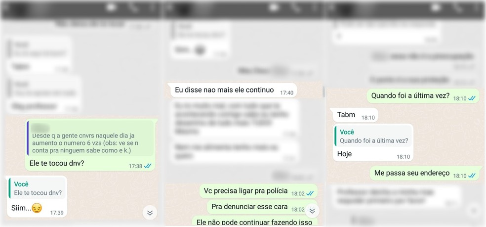 Prints enviados mostram a conversa que a menina teve com professor que a socorreu logo após o último abuso sofrido. A garota relata que havia sido estuprada ao menos seis vezes pelo pai.