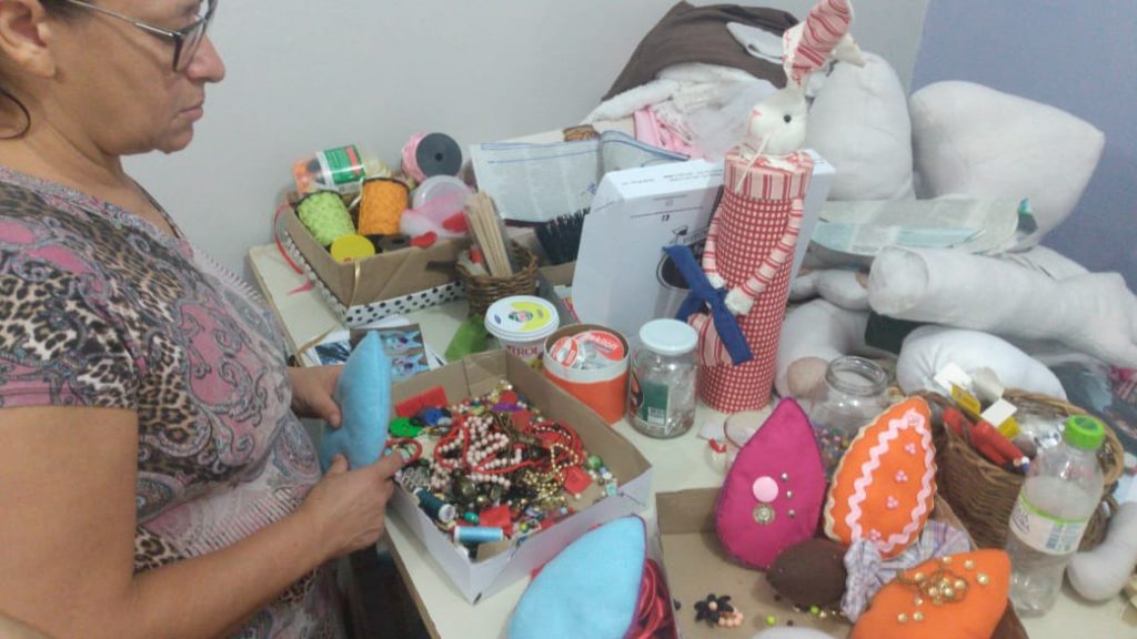 Segundo a instrutora de artes do SENAR, Marluza Carvalho, mesmo com pouco tempo de treinamento para a confecção, as peças estão sendo produzidas com tecidos e materiais de artesanato que estão sendo usados para criar os itens decorativos.