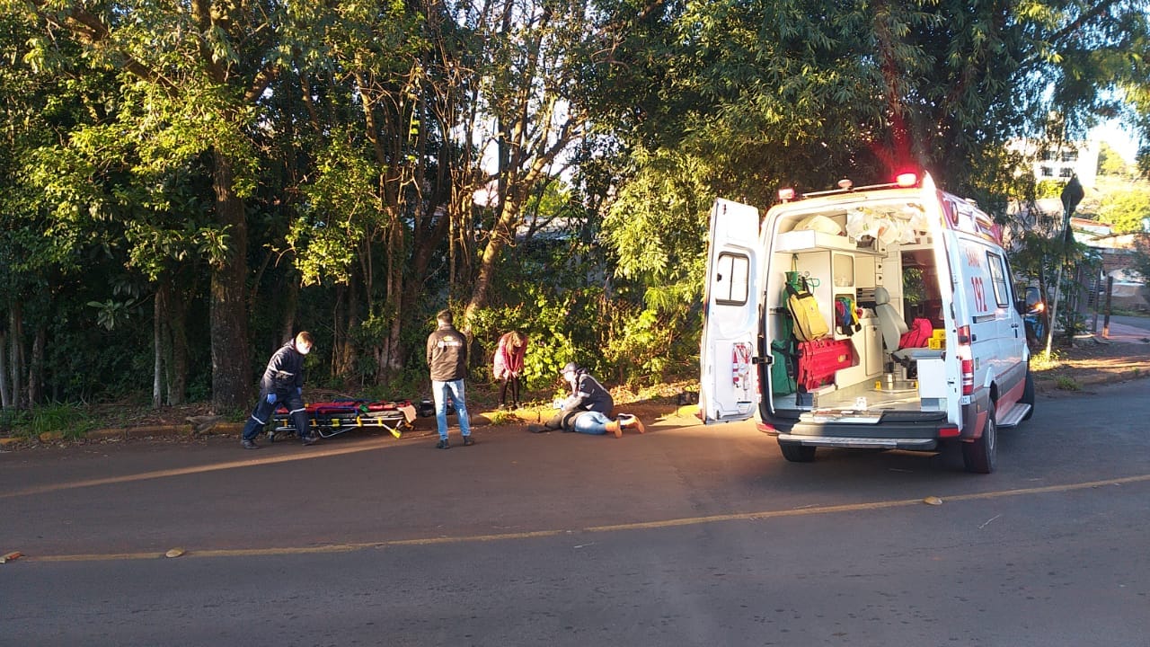 Conforme informações, uma moto descia pela via com dois ocupantes quando por motivos desconhecidos atropelou a mulher. Ainda, conforme informações, a vítima foi atendida pelo SAMU Salvar e encaminhada ao HCI.