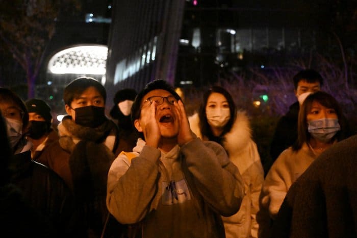 Centenas de moradores de Pequim, capital da China, enfrentaram o frio deste domingo (27) à noite e responderam ao chamado para um protesto que se espalhou pelas redes sociais, em uma concentração silenciosa pelas vítimas de um incêndio e também contra as políticas anti-covid do governo.