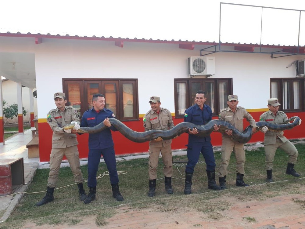 O animal foi encontrado pelo dono da propriedade, que imobilizou a cobra com uma corda e acionou o Corpo de Bombeiros do Acre. Seis bombeiros foram ao local e fizeram a captura do animal.
