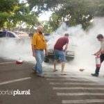 Veículo pega fogo em estacionamento de supermercado em Santa Rosa