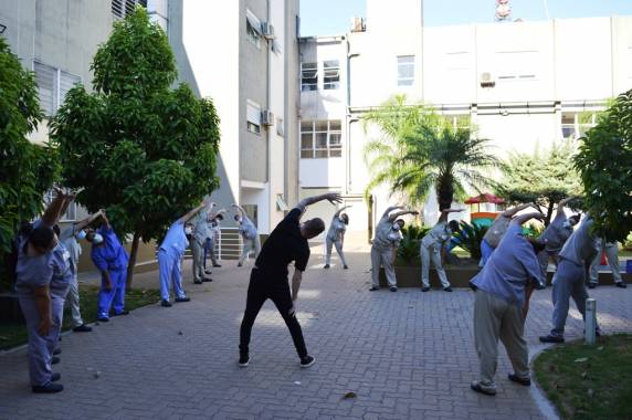 Ao longo do mês de janeiro, três encontros foram realizados. Dois deles voltados ao cuidado com a postura e com a coluna, com apresentações teóricas e exercícios práticos, e aberto a todos os profissionais que tivessem interesse em participar. A mais recente atividade promovida pelo programa foi voltada aos profissionais do setor da Higienização, que logo nas primeiras horas da manhã de segunda-feira (31), participaram de um momento de ginástica laboral para dar início à semana.